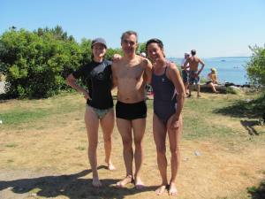 Sunday’s swim was perfect for concluding the holiday weekend – we had perfect conditions all four days. As usual, we had many familiar faces, but we also had some new swimmers along with drop-ins from former regulars who now reside from as nearby as Pittsburgh and as far as Paris. The random photo as seen below never gets old and our model Ted looks good in the new Crusty Barnacle hoody that he wasn’t afraid to don in the hot sun. If you placed an order for one, contact Steve to make arrangements to pick it up and if you still would like one, given the demand a second order will be going in soon.